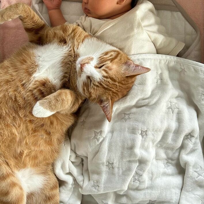 どんな顔やねん!赤ちゃんの足を初めて嗅いだネコの反応に「いい顔してる!」【激かわキッズ&アニマル奇跡の瞬間】