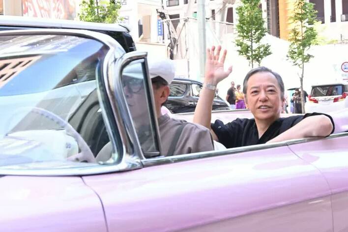 綾瀬はるか&長谷川博己&ジェシーらが、銀座の街中に登場!リボルバーで新作のヒット祈願