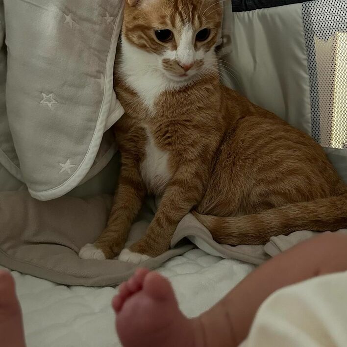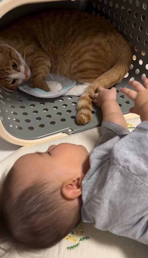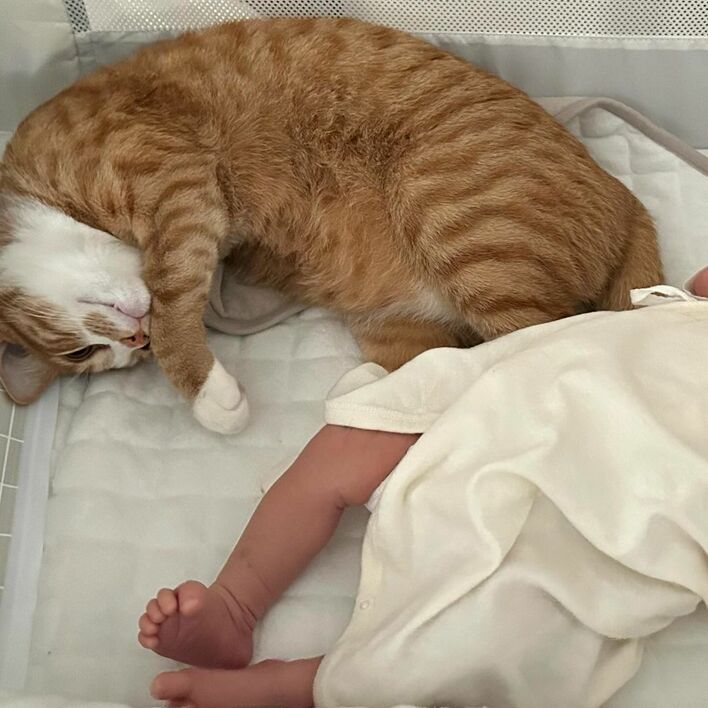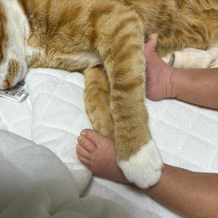 どんな顔やねん!赤ちゃんの足を初めて嗅いだネコの反応に「いい顔してる!」【激かわキッズ&アニマル奇跡の瞬間】