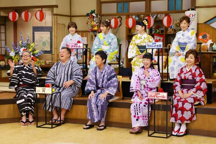上段左から)松本伊代、渋谷凪咲、未知やすえ、羽野晶紀下段左から)円広志、小杉竜一、吉田敬、リンゴ、モモコ
