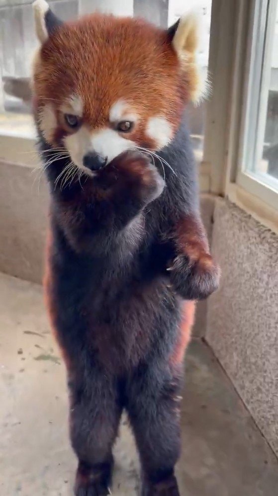 「お上品やね」レッサーパンダの“美しすぎる立ち姿”が反響!姿勢をキープしたままリンゴを味わう様子に「内股っぽくてかわいい」【激かわアニマル奇跡の瞬間】