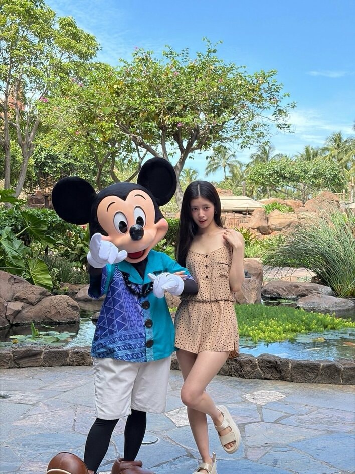 「美がすごすぎる」NiziU RIMAハワイのディズニー満喫しミッキーと腕組みショット披露!10歳に戻ったような無邪気な姿に「かわいい最高」