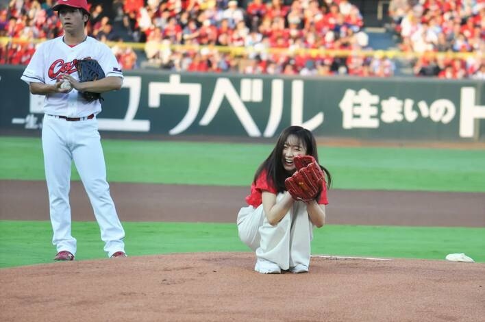 佐久間みなみアナ 始球式でノーバン投球ならず「投球は20点。でも楽しめたので、そこは100点です」