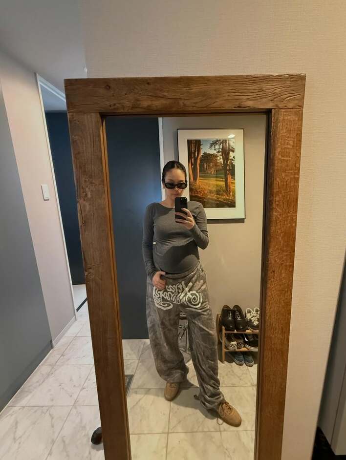 第1子妊娠中・筧美和子 お腹が大きく膨らんだマタニティコーデ披露!鏡越しの自撮りショットに「もう少しですね」「すくすく育ってますね」