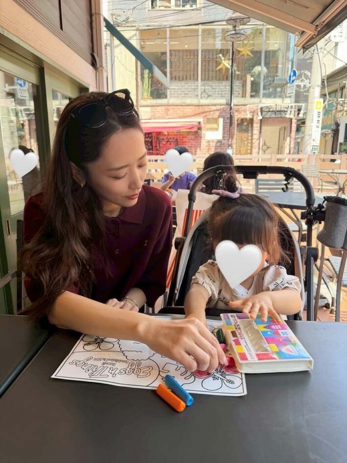 3児の母・近藤千尋「わたし似」の娘との2ショット披露!カフェテラスで塗り絵に夢中な1歳三女に「おててもちっちゃくて可愛い」