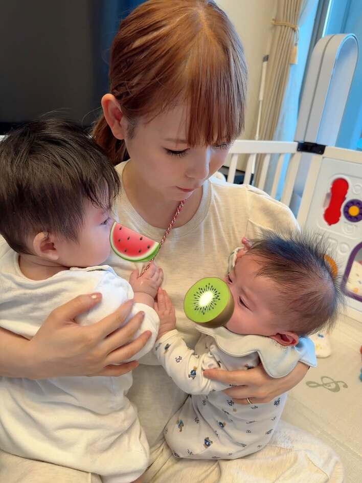 「ママの取り合い」中川翔子 生後6ヵ月双子が“ママ登山”で甘える姿公開!小さな手でページめくる成長ショットも披露「可愛い可愛い可愛い」