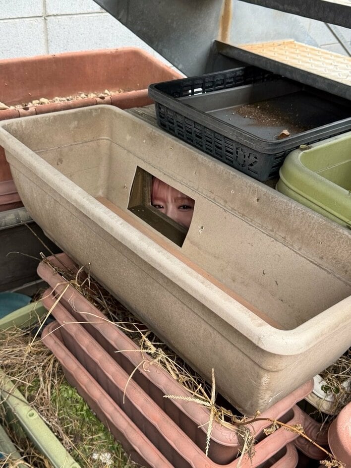 「おもろすぎ」NiziU・RIO プランターからひょっこり“かくれんぼショット”公開!横目でニヤッと笑ったチャーミングな姿に「射抜かれました」