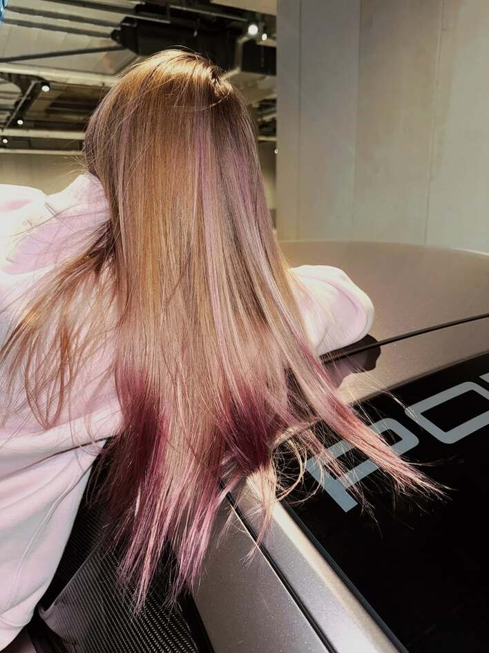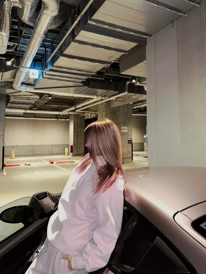 「珍しい色」マギー 愛車のポルシェに合わせてイメチェンした姿を披露!クールな表情でボディーに寄りかかる様子に「似合う」「センス良い」