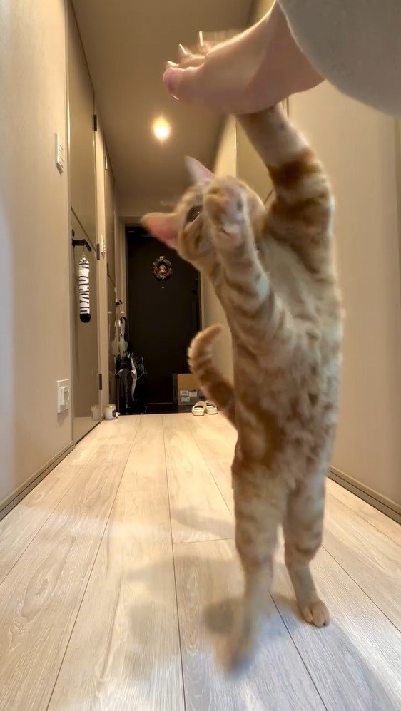 「賢すぎ」子猫が飼い主と“タッチ”する姿にメロメロ!ダイナミックな二足立ちやキュートなお手の“タッチ”も「永遠に見てられる笑」【激かわアニマル奇跡の瞬間】