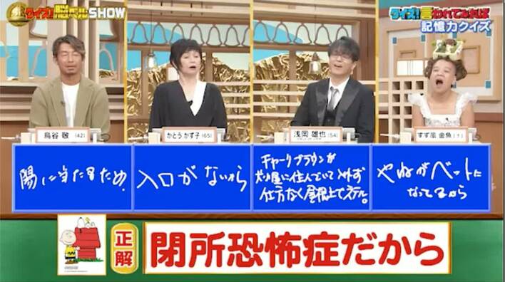 <『脳ベルSHOW』クイズ>スヌーピーが犬小屋の屋根の上で眠る理由は?