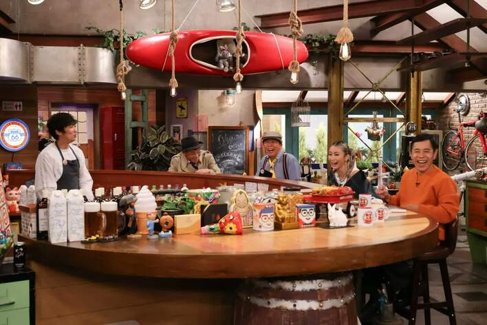 左から)石田明、間寛平、村上ショージ、倖田來未、岡村隆史