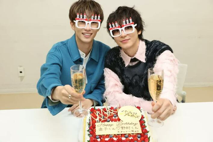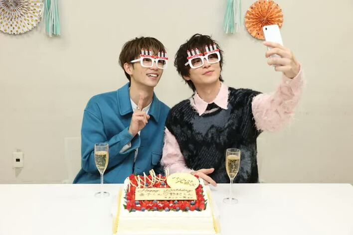 金子隼也&野村康太 サプライズ誕生日会で仲良く自撮り!ケーキをどこから食べるか“小声相談”