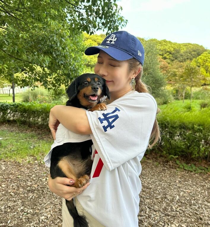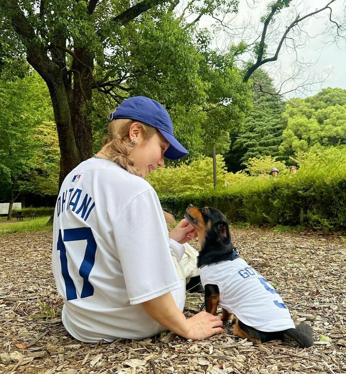 「鬼かわ!」ヘラヘラ三銃士・ありしゃん 大人可愛い“全身大谷翔平コーデ”で愛犬とラブラブショット公開