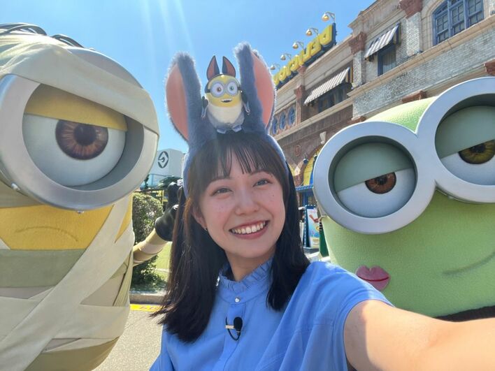 【写真69枚】USJハロウィン 仮装したミニオンたちと大はしゃぎ ハローキティと一緒にダンス!フジ新人アナが体験 『ハハハ! ハロウィーン・パーティ』