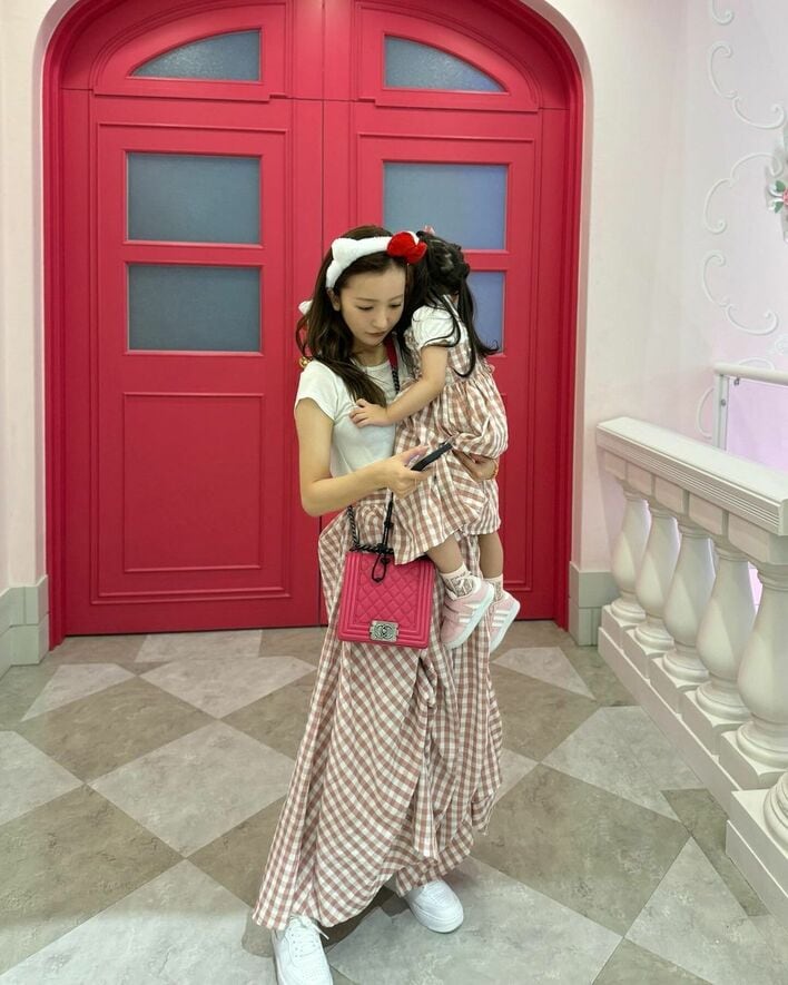“2人とも天使”板野友美2歳娘「ベビちん」とギンガムチェックの親子コーデを披露 片手で娘をだっこするショットに共感の声も
