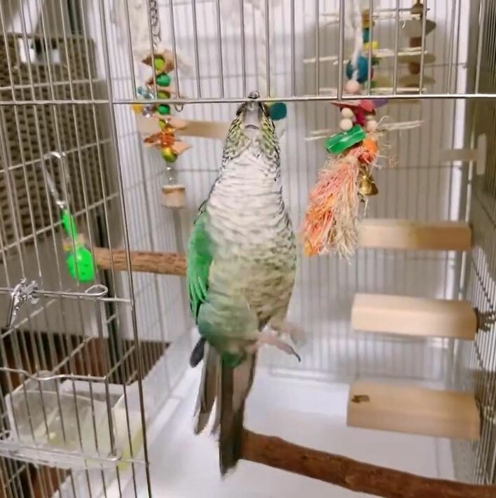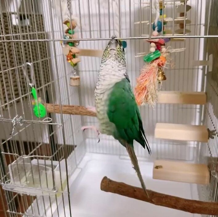 足場がない…どうする!?インコの予想外の行動に「声出して笑った」と癒やされる人続出【激かわアニマル奇跡の瞬間】