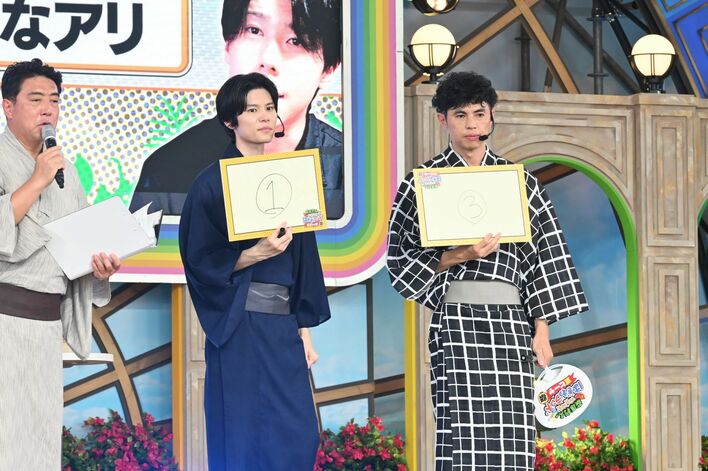 左から)佐野瑞樹アナ、萩原利久、小島よしお