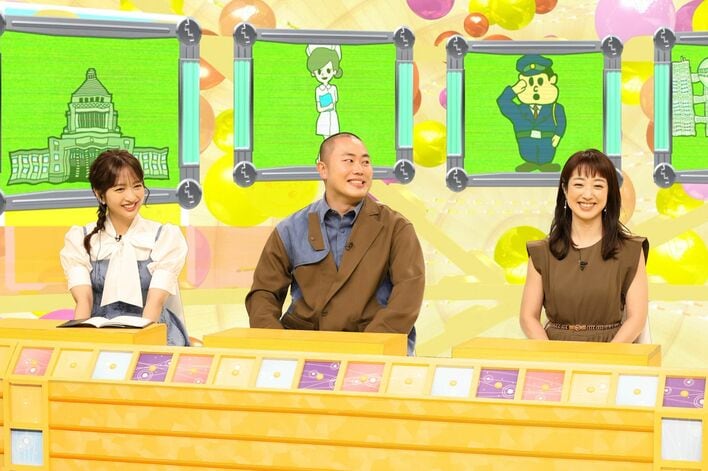 左から)藤本万梨乃、岡部大、川田裕美、山田涼介、山里亮太、ゆうちゃみ、稲田直樹、河井ゆずる