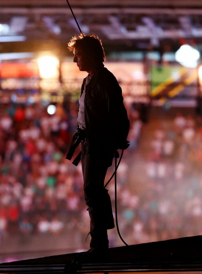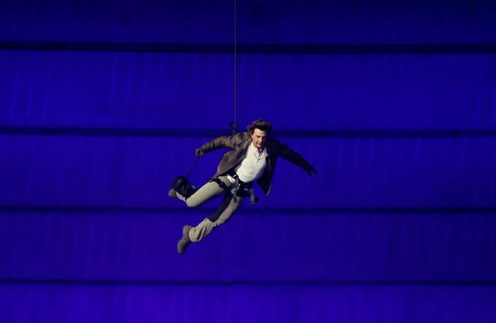 空からトム・クルーズ!閉会式に『ミッション:インポッシブル』さながらのカッコ良すぎるワイヤー演出で登場【パリ五輪】