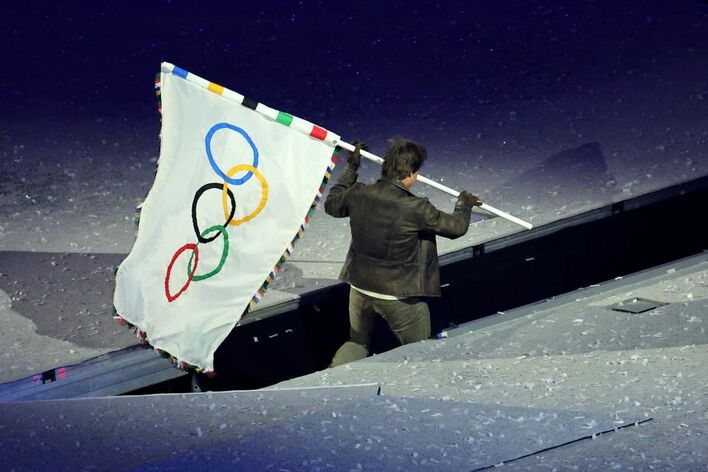 空からトム・クルーズ!閉会式に『ミッション:インポッシブル』さながらのカッコ良すぎるワイヤー演出で登場【パリ五輪】
