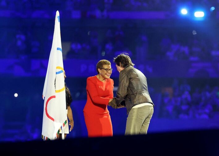 空からトム・クルーズ!閉会式に『ミッション:インポッシブル』さながらのカッコ良すぎるワイヤー演出で登場【パリ五輪】