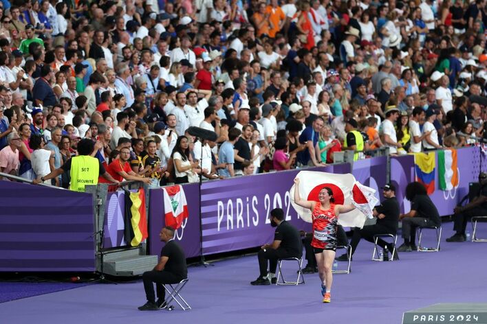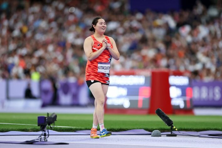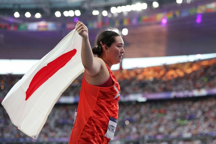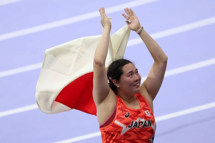 やり投げ北口榛花 金メダル直後に日の丸を掲げたら“ハートを背負った奇跡の1枚”に…!人柄そのまま「全部かわいい!」【パリ五輪】