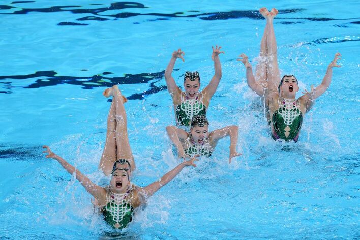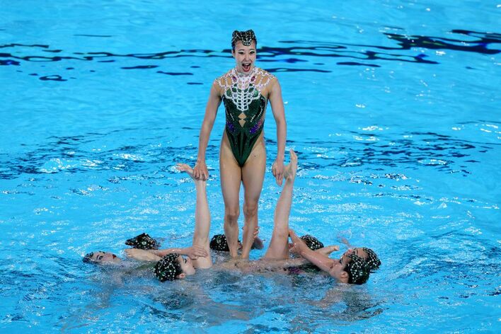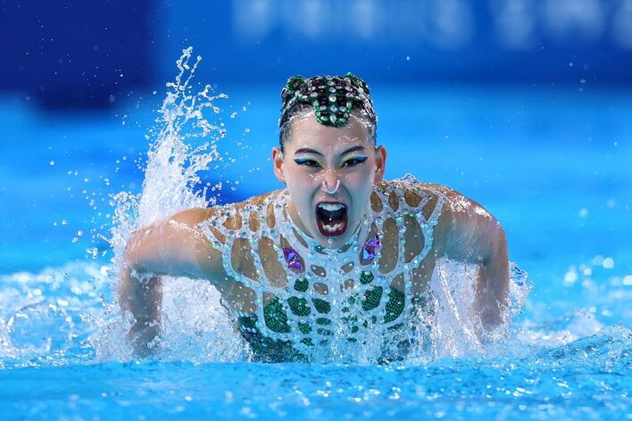 “猿系のお顔”!?背中が大きく開いた個性豊かな水着姿に注目!日本はワニをテーマに髪飾りには「目」も 【パリ五輪】