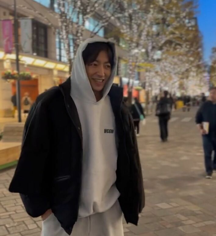 大沢たかおと一緒にイルミネーションデート!?オフ感たっぷりな全身スエットコーデ姿に「輝きすぎてる」