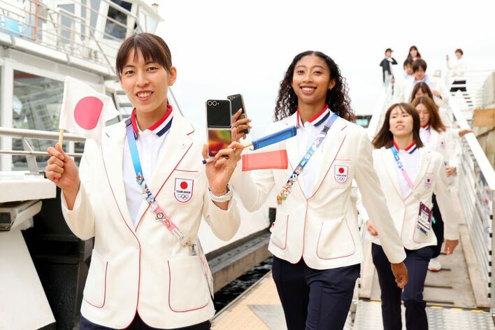 【パリ五輪】開会式に日本選手団が登場 セーヌ川を船に乗って入場行進 史上初のスタジアム外開催