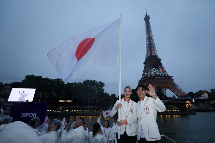 【パリ五輪】開会式に日本選手団が登場 セーヌ川を船に乗って入場行進 史上初のスタジアム外開催