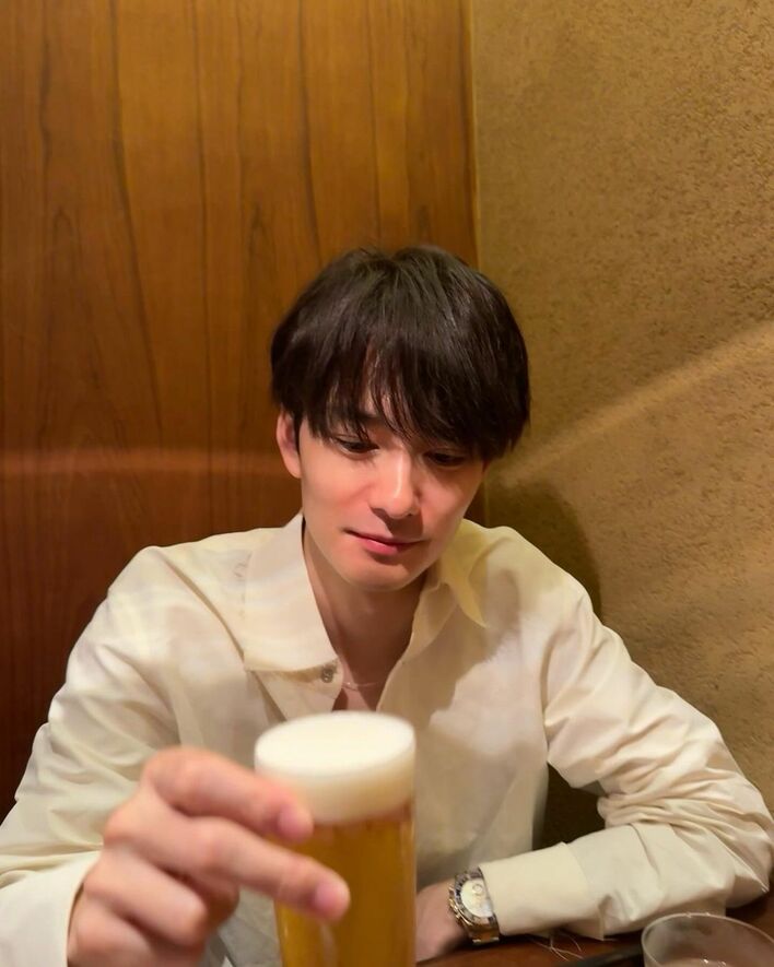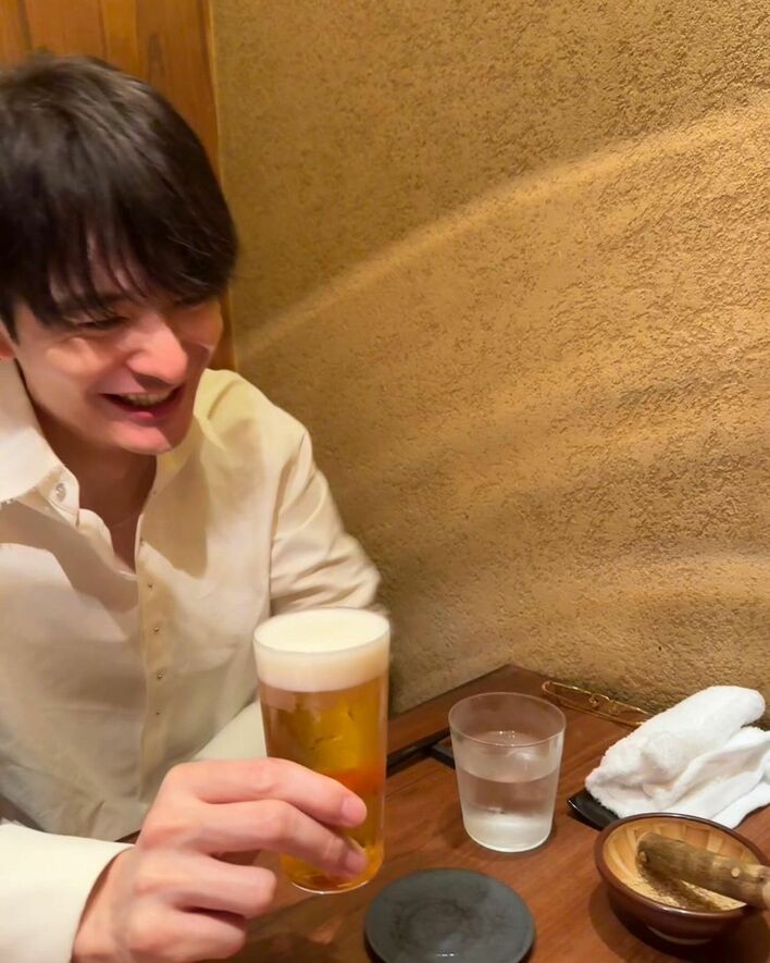 岡田将生 至近距離ショット「とんかつが好きだ」ビール片手に“ほろよい”姿公開!「可愛い無理」とファン大興奮