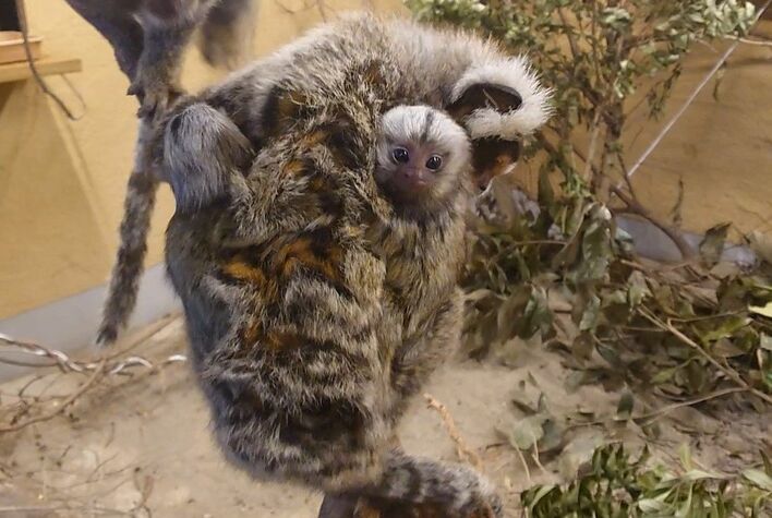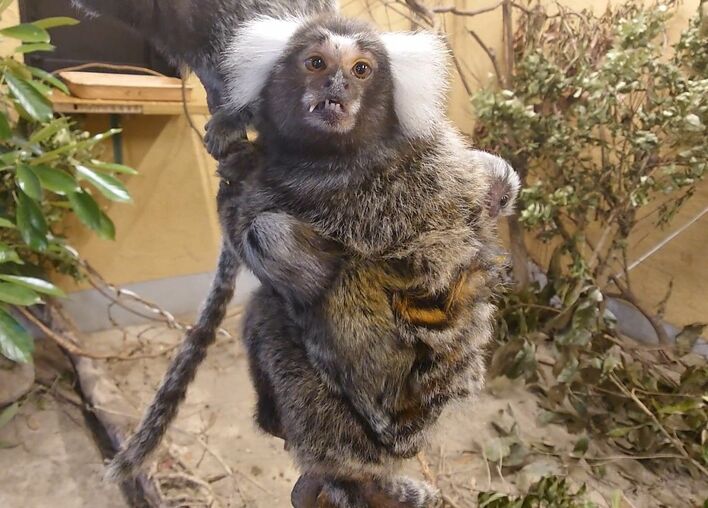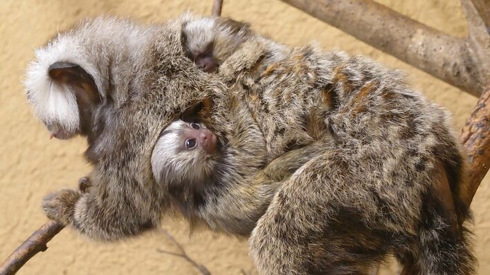 お母さんにくっついて離れない!2匹のコモンマーモセットの赤ちゃんのつぶらな瞳でしがみつく姿【激かわアニマル奇跡の瞬間】