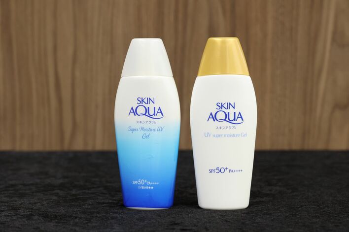 (左)スキンアクア「スーパーモイスチャーUVジェル」 (右)スキンアクア「スーパーモイスチャージェル」