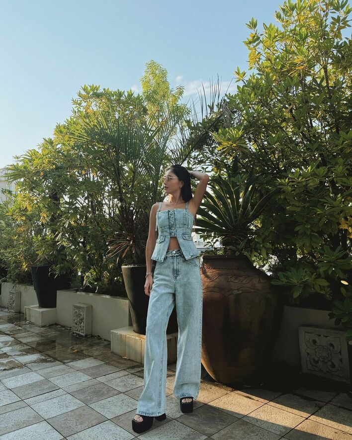 みちょぱ へそ出し全身デニムコーデを披露 「日焼けしたら肌出したくなるね」と抜群のスタイルを見せる