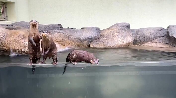「滑って落ちないのが凄い!」コツメカワウソたちがみんなで起立 器用な立ち姿を激写!【激かわアニマル奇跡の瞬間】