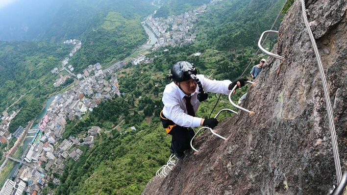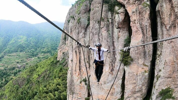 酒井貴士「人生で一番怖い」「死んだかと思った」中国の“最恐絶叫アクティビティ”崖登り&悪魔のブランコに挑戦!