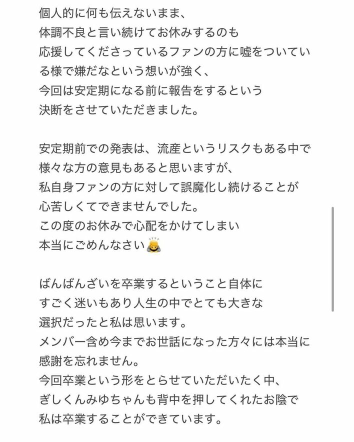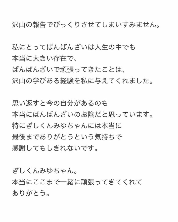 妊娠・卒業発表のばんばんざい・るな “最後のイベント”での3ショット公開 「ぎしくんみゆちゃんありがとう」メンバーへの感謝綴る