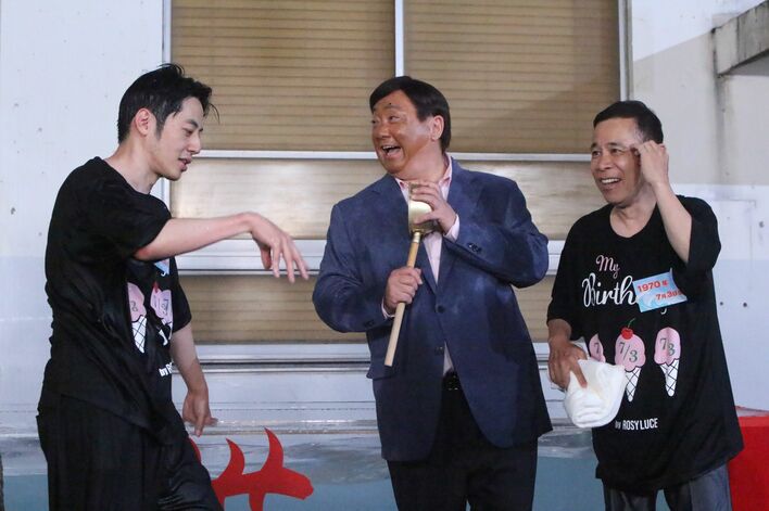 総監督の片岡飛鳥が熱湯ダイブで感動のエンディング!山本圭壱も登場で大盛り上がりの岡村隆史の合同誕生会『めちゃユル』【密着現場レポートその④】