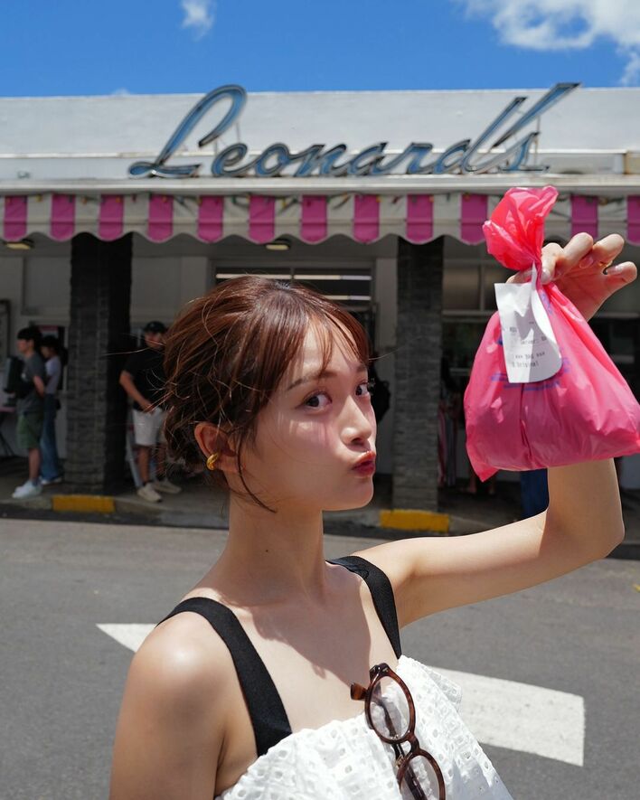 インフルエンサーの田久保夏鈴 ハネムーンでハワイ訪れスタイル抜群の水着ショットや“天使なデコ出し”姿を公開