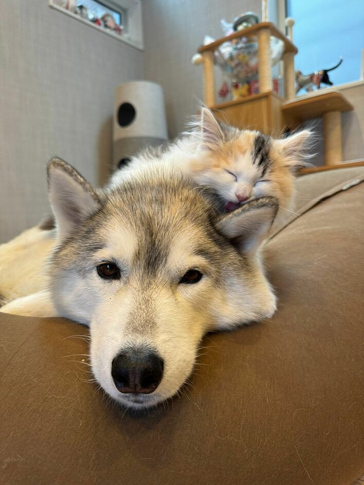“大好きが止まらない動画”8歳のわんこに甘える生後3カ月の猫が話題!愛あふれる姿に「超可愛くてもん絶」【激かわアニマル奇跡の瞬間】
