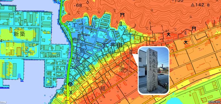 奉 再建大鳥居一基(仁井田神社御旅所の碑)