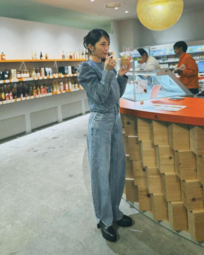岡本玲 “へそ出し”デニムセットアップ姿を公開!地元和歌山のパンダグッズとの2Sに「世界一癒される」との声