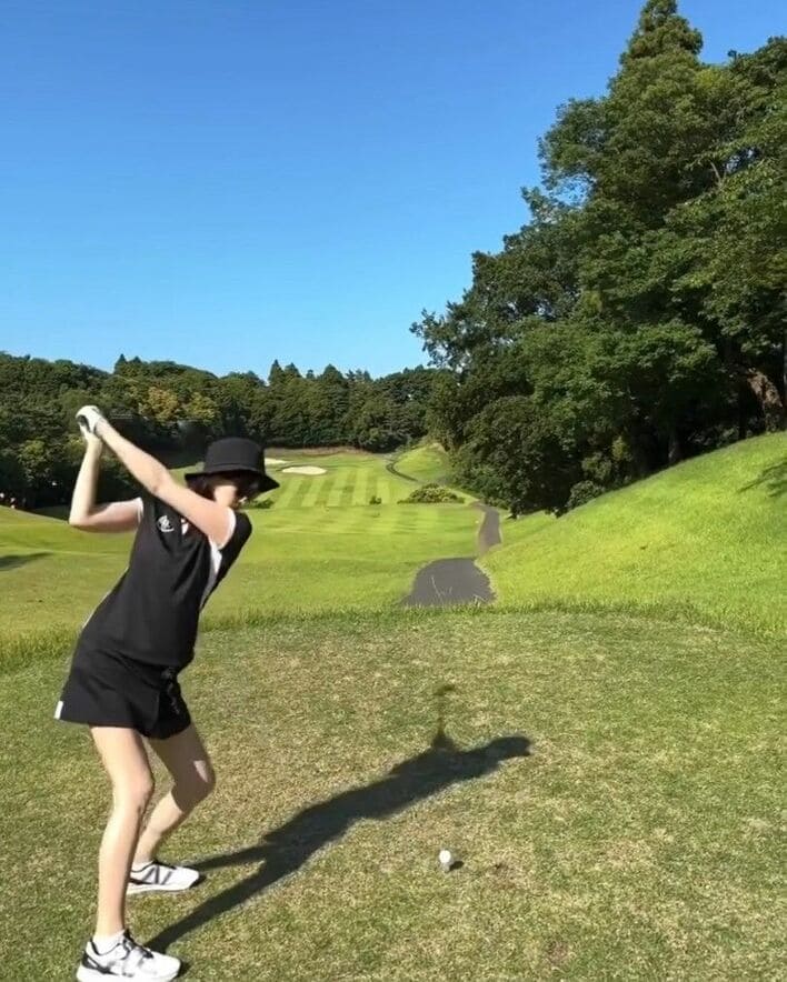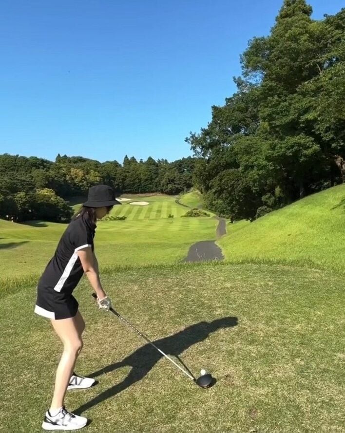 横山ルリカ 久々のゴルフでナイスショット!モノトーンのウェア姿で喜ぶ姿に「美しいフォーム」「ゴルフ女子で1番可愛い」と称賛の声