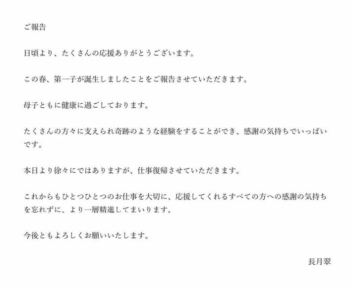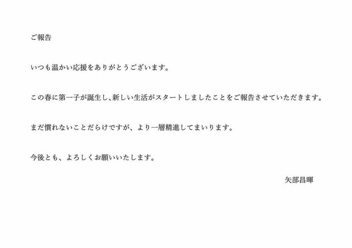 DISH//矢部昌暉(26)春に第1子誕生したこと報告 妻・長月翠(24)は早くも仕事復帰「新しい生活がスタート」