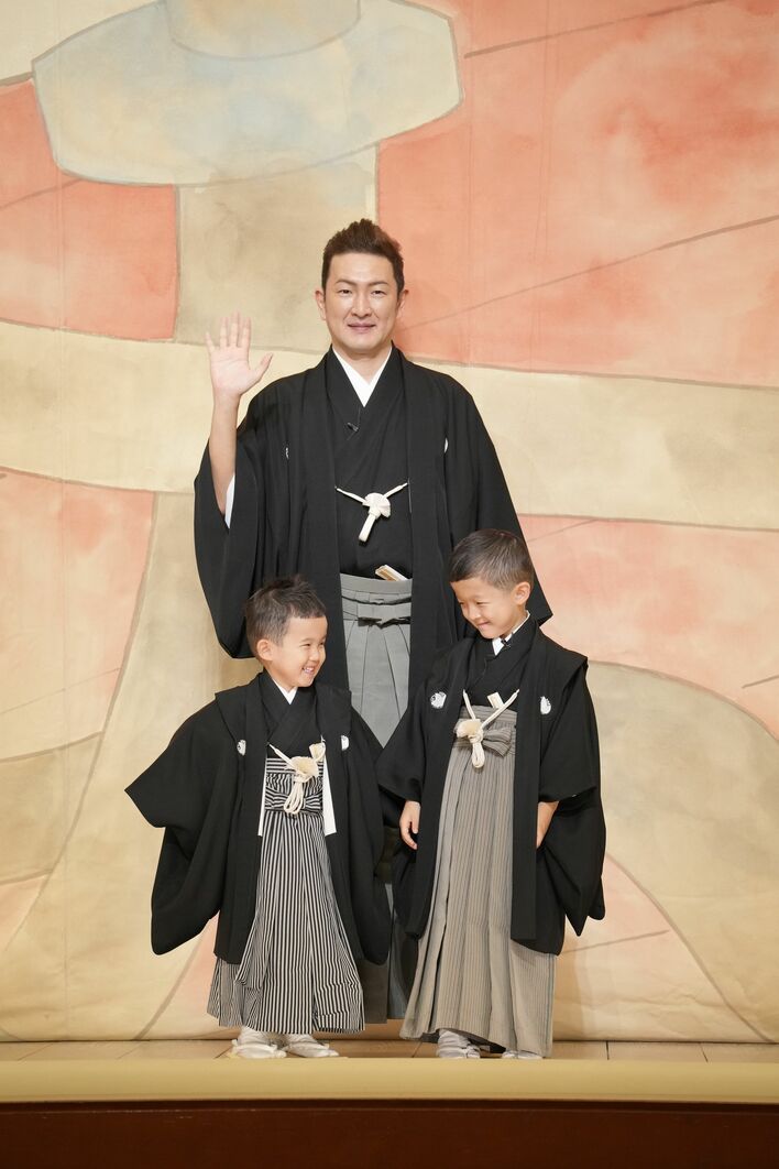 中村陽喜&中村夏幹 ビートたけし原画の祝幕に「いいです!」父・中村獅童は2人の初舞台に“ライバル”宣言