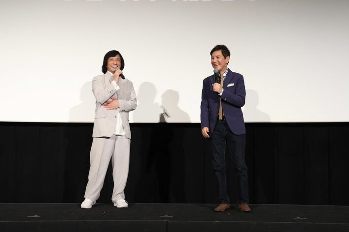 左から)ジャッキーちゃん、関根勤、ラリー・ヤン監督