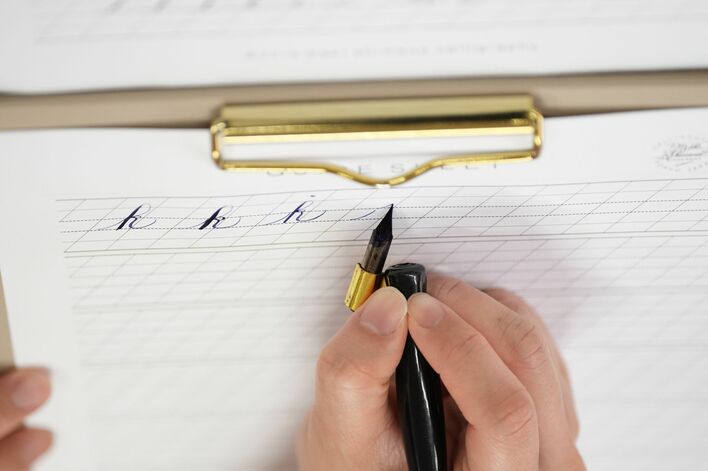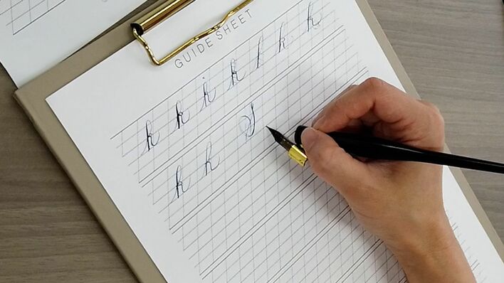 井上アナ「k」を書く様子