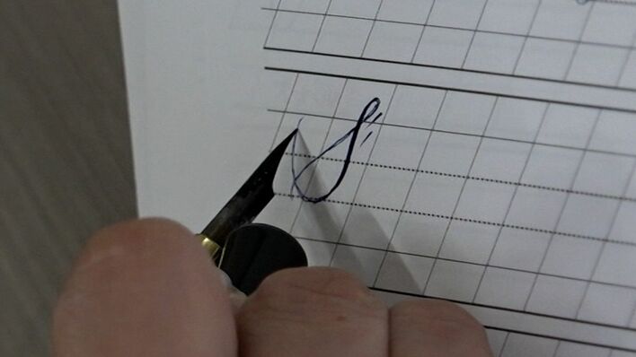 井上アナ「i」を書く様子