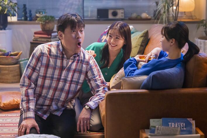左から)飯沼愛、佐藤二朗、久間田琳加