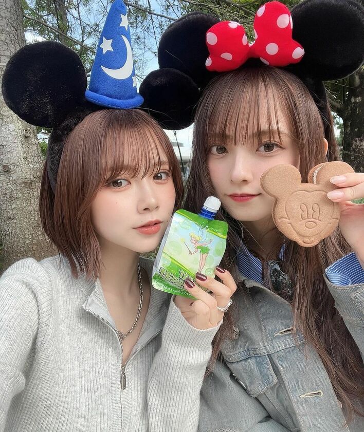 水野舞菜&高梨優佳 ミニスカ&おへそチラ見せディズニーコーデに「天使が降りてきた!」の声